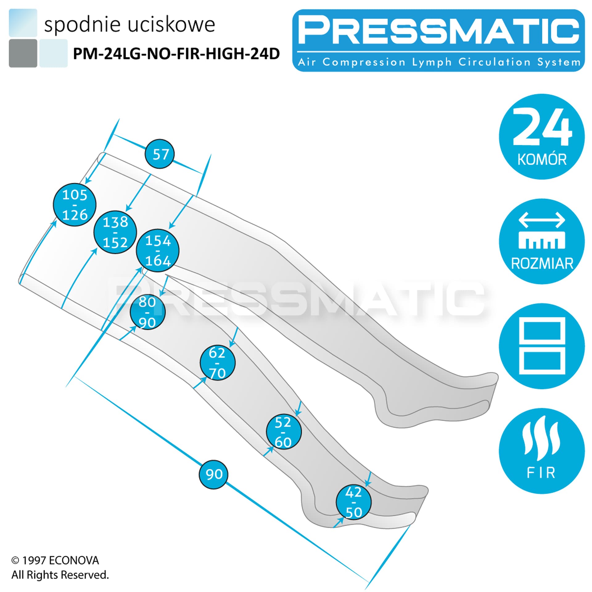 Pojedyńczy mankiet 24-komorowy z termoterapią (spodnie wysokie lub kurtka)